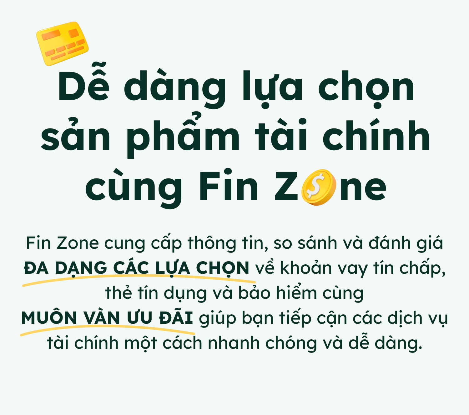 Fin Zone cập nhật những thông tin mới nhất về khoản vay, bảo hiểm, thẻ tín dụng, chương trình và nhiều thông tin khác về sản phẩm tài chính
